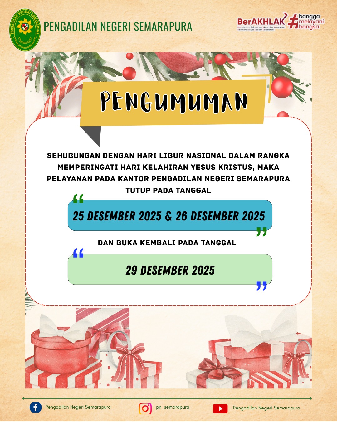 Pengumuman Hari Raya Natal Tahun 2025