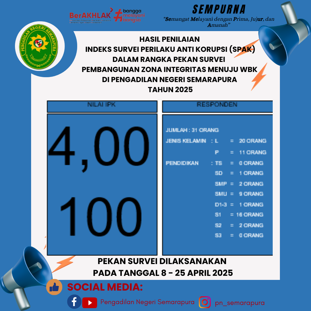 Publikasi Hasil Penilaian Indeks Survei Perilaku Anti Korupsi (SPAK)