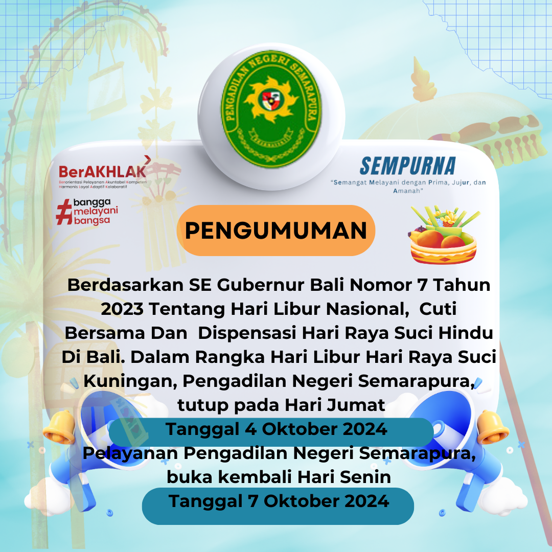 Jam Kerja Pelayanan Selama Bulan Ramadhan Pengadilan Negeri Semarapura