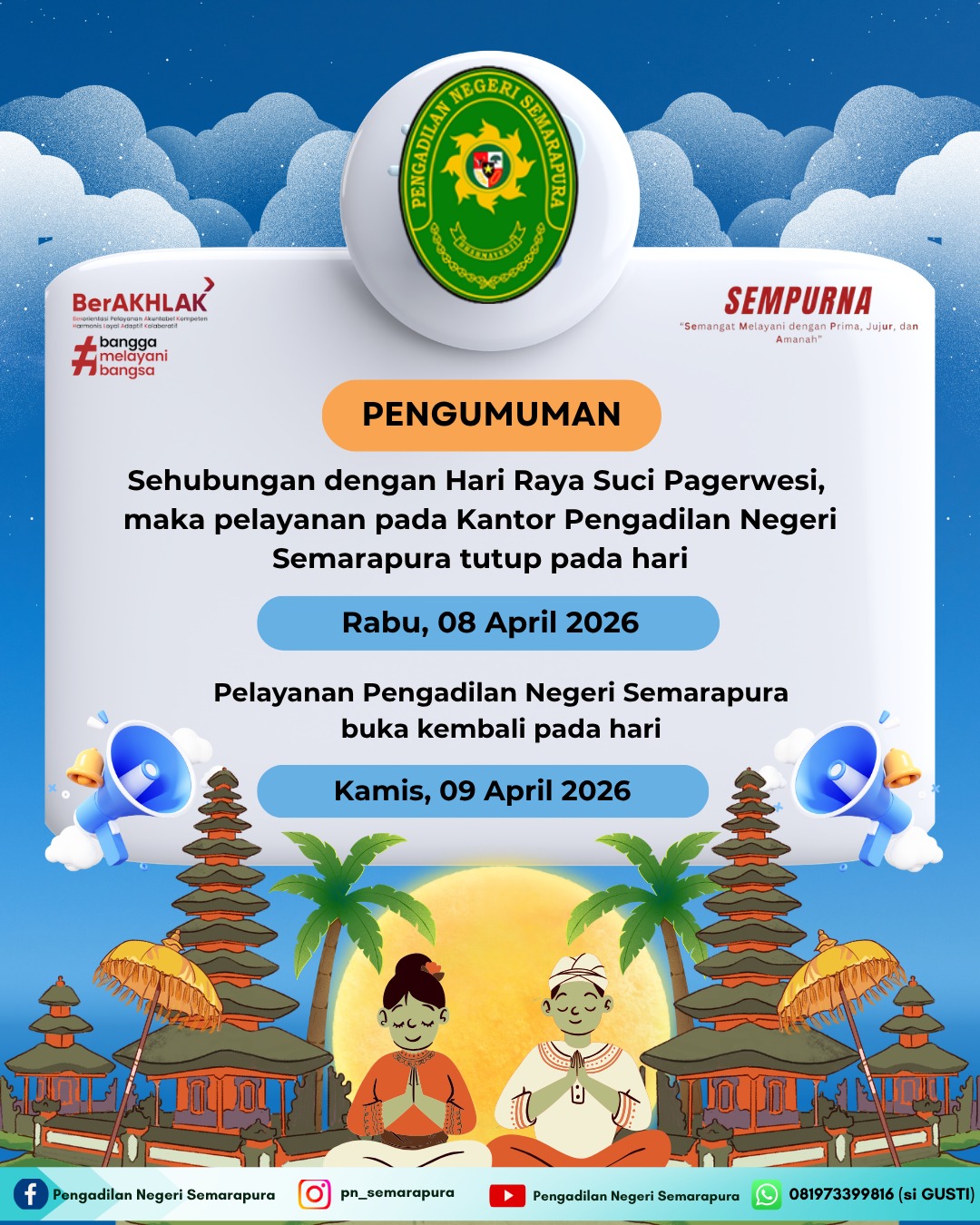 PENGUMUMAN LIBUR HARI RAYA SUCI PAGERWESI