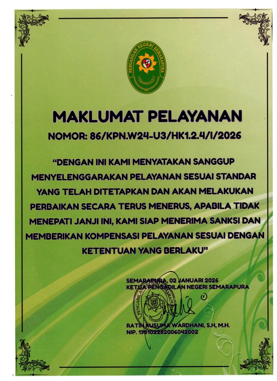 MAKLUMAT PELAYANAN PENGADILAN NEGERI SEMARAPURA